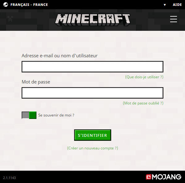 Depuis le nouveau launcher sorti avec Minecraft 1.2.3, le nom d'utilisateur et le mot de passe utilisent un préfixe.
