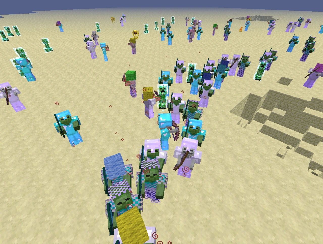 - Avec le mode Super Hostile, les orages sont bien plus fréquents et la foudre fait apparaître des créatures spéciales, comme le cochon zombie avec une pancarte. Elle fait également apparaître des blazes et des creepers électriques, ainsi que des zombies et des squelettes modifiés. Ces créatures seront hostiles envers vous, même si vous êtes en mode créatif. La foudre a également la capacité de frapper les créatures à travers les blocs. Les orages sont très souvent passagers et ne durent que quelques instants. Lorsqu'un orage apparaît, une explosion due aux creepers électriques et à la foudre a souvent lieu. De plus, vous êtes victime de l'effet cécité pendant quelques secondes. Une fois un orage terminé, les créatures spéciales qui sont apparues disparaîtront aussitôt.