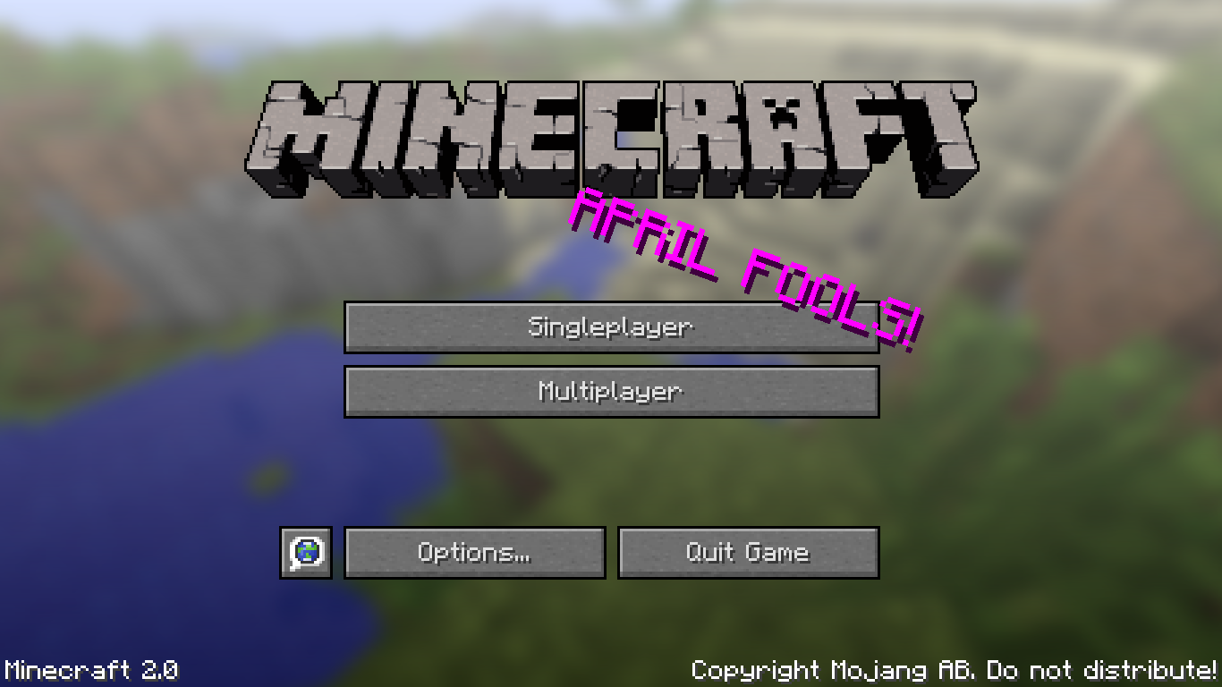 Minecraft 2.0 est le poisson d'avril de Mojang pour l'année 2013. Le 1er avril, ils ont annoncé une version 2.0 de Minecraft par le biais de leur site.[1] Rapidement, la plupart des gens ont compris qu'il s'agissait simplement d'un poisson d'avril. Toutefois, une version effective a été distribuée aux personnes célèbres de la communauté. Cette version n'a pas été mise à la disposition du public, mais elle a été postée sur la base de données du site de Mojang et quelques personnes ont découvert les liens de téléchargement. Depuis le mardi 2 avril, il n'est plus possible de télécharger les différentes versions de Minecraft 2.0 depuis les serveurs de Mojang.