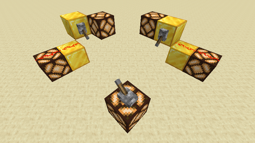 - Quand il est activé, un levier et le bloc sur lequel il se trouve (sauf si ce bloc est une dalle ou un escalier) alimentent tous les mécanismes et composants de redstone qui leur sont adjacents (y compris sous et au-dessus le levier et le bloc).