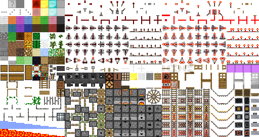 Ce modèle affiche une grille de "sprites" de blocs de Minecraft pour représenter une structure (souvent des circuits de redstone et des mécanismes).