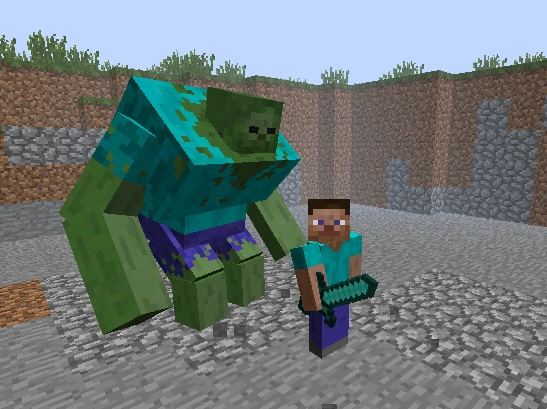 Lorsque le zombie mutant rugit, vous subissez un demi-cœur de dégâts si vous êtes à proximité. Mais ce n’est pas une simple attaque : le zombie mutant ressuscite des zombies sortant de la terre pour le soutenir ! Invocation jusqu’à six zombies en fonction de l’environnement (en engendre moins dans la journée).