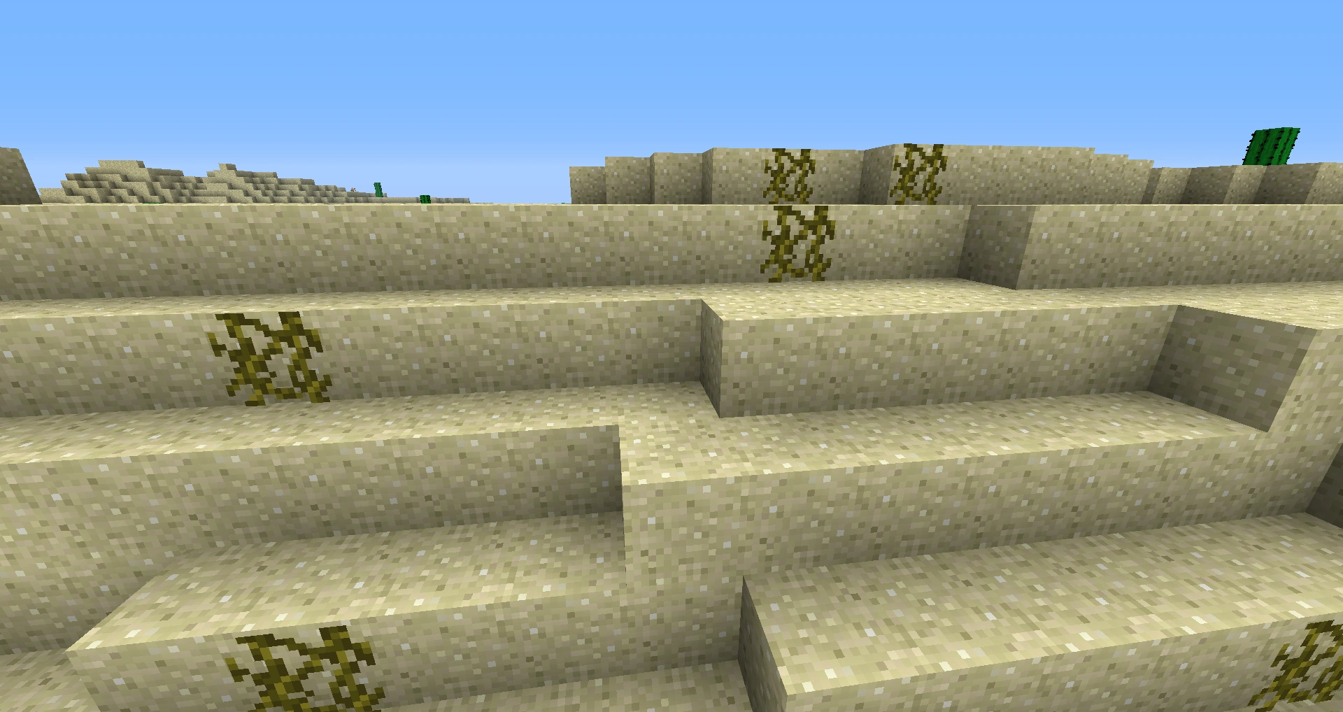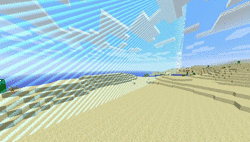 Qui plus est, comme vu dans quelques captures d'écran, le sable et les graviers tombent d'une manière étrange. Seul un bloc sur quatre est soumis à la gravité. Cela peut aussi être dû aux erreurs de virgule flottante, puisque ces entités utilisent également cette méthode de positionnement.