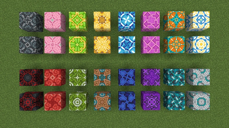 Quelques motifs de terre cuite émaillée de 2×2 blocs.