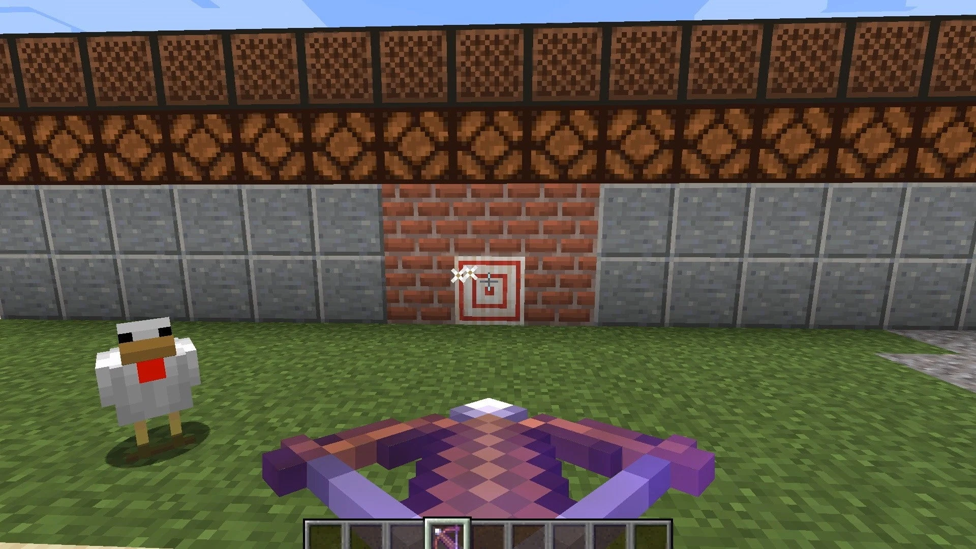 - Toucher le centre d'une cible à au moins 30 mètres (blocs) de distance.
