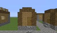 | Petite maison | Les petites maisons sont des bâtiments semblables aux cabanes, mais possèdent un sol en pierres ou en grès, et leurs toits sont toujours plats ; elles peuvent avoir ou non des barrières sur leur toit, lui-même accessible par une échelle, d'où l'on a une bonne vue sur le village qui n'est par ailleurs pas aussi bonne que celle de l'église. Elles n'ont pas de porte, et un villageois de profession aléatoire y est généré habituellement, même s'il ne reste pas à l'intérieur en raison de l'absence de porte. | ![]() |