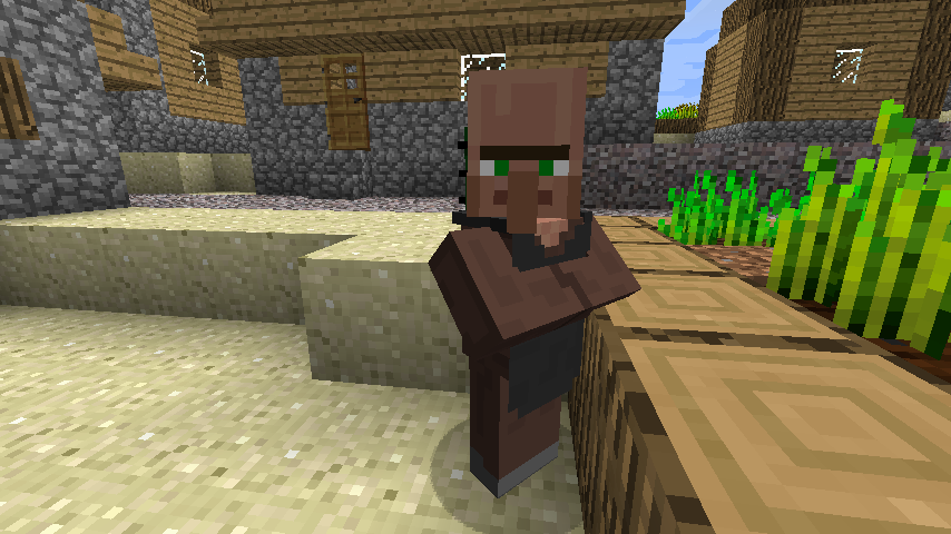 Les villageois fuient également les cochons-zombies, malgré le fait que ceux-ci ne les attaquent pas.
