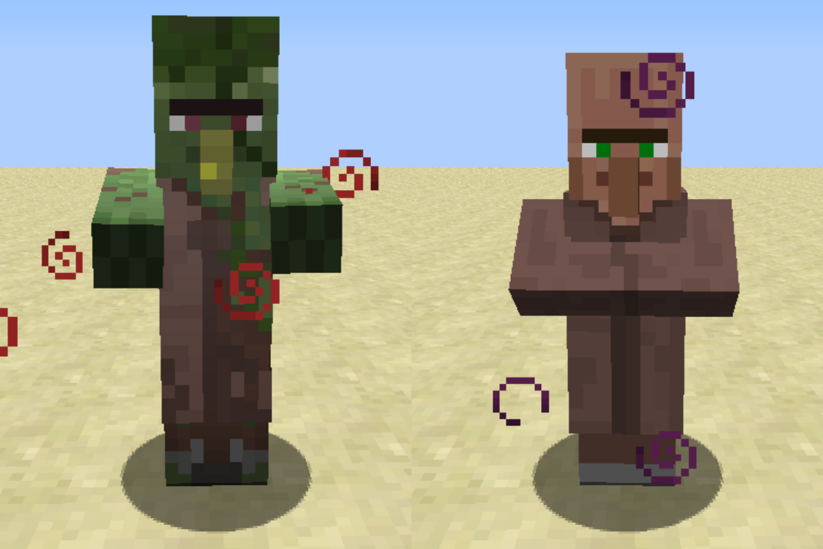 Les zombies-villageois ainsi apparus se voient attribuer une profession au hasard, qui n'est pas conservée une fois guéris, contrairement aux villageois convertis.