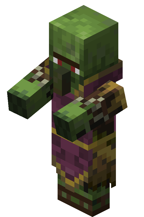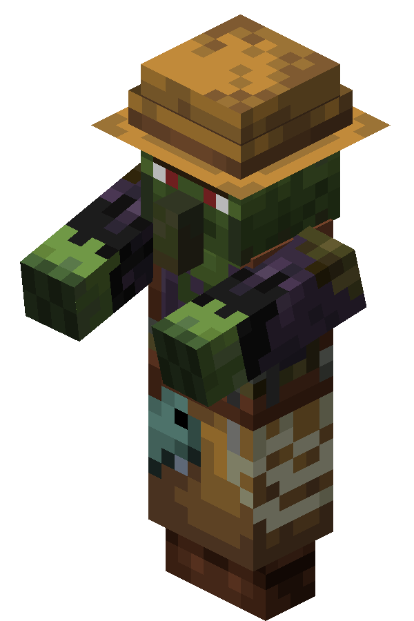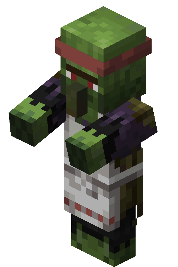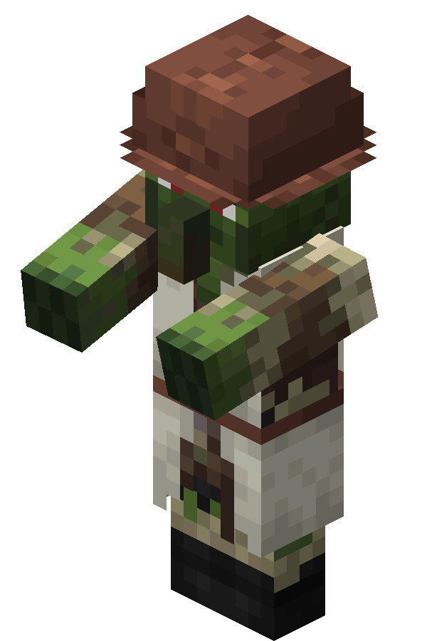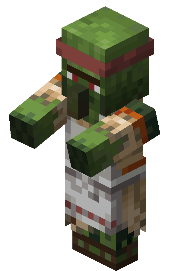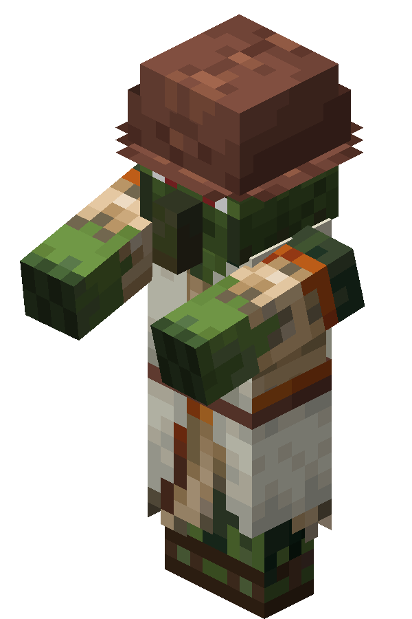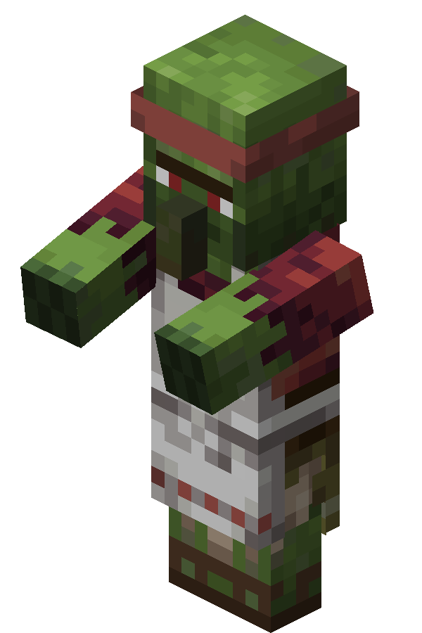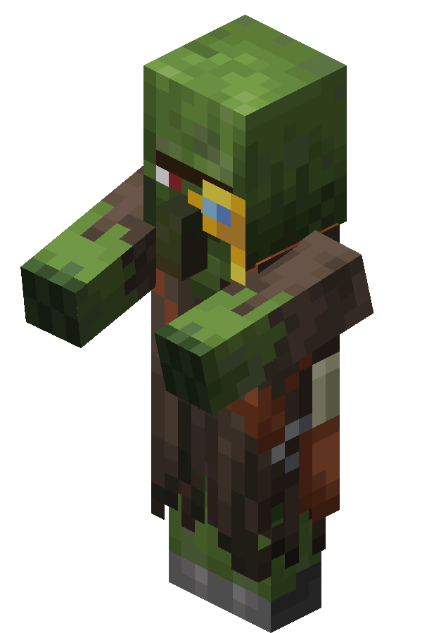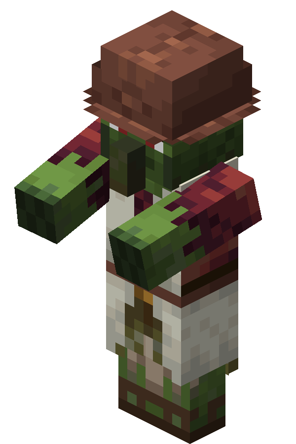 | Les zombies-villageois conservent leurs professions et leurs vêtements, qui ont une apparence en lambeaux. | |||||