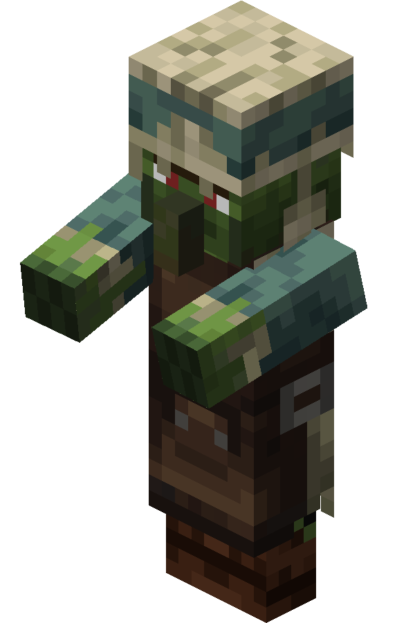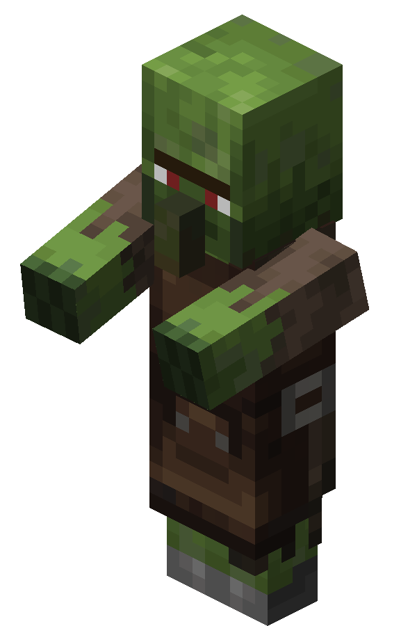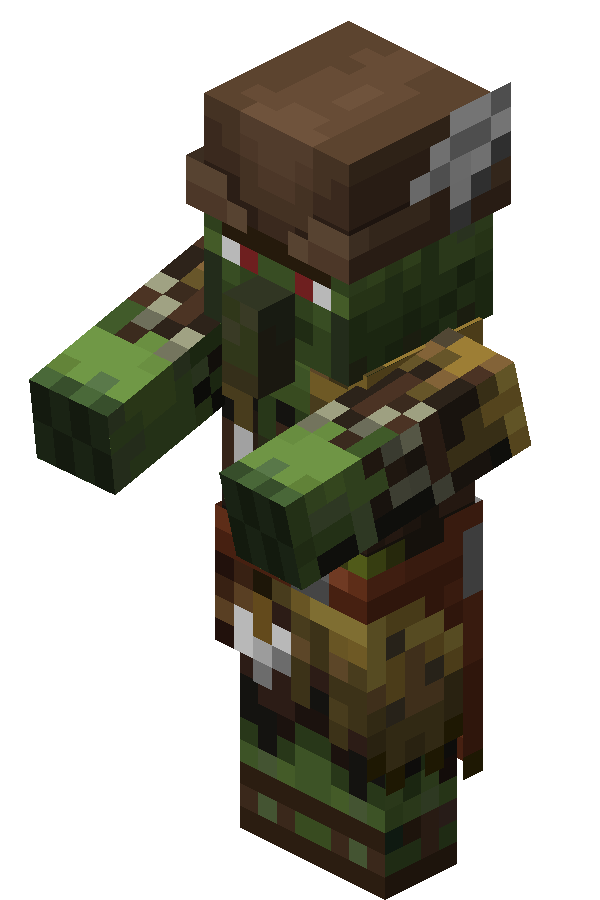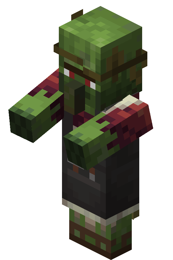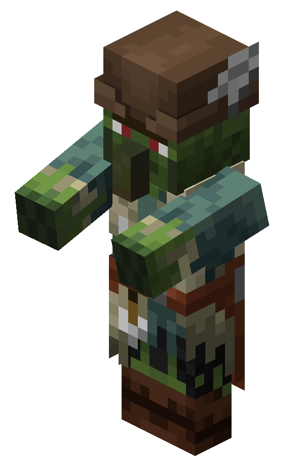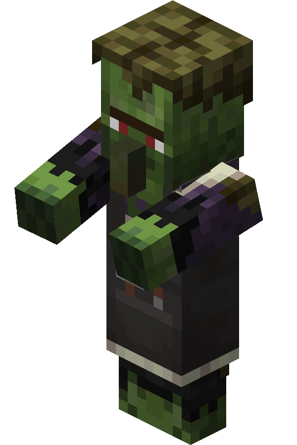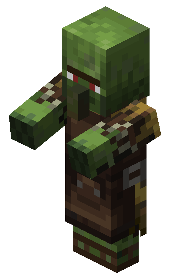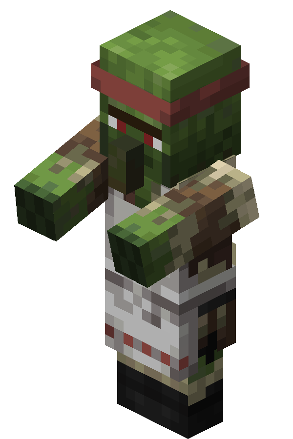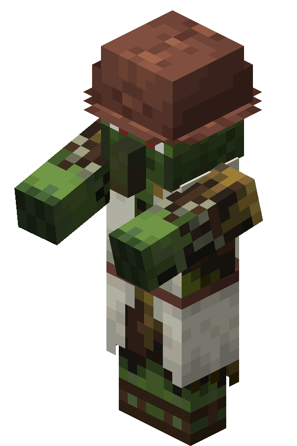 | Les zombies-villageois conservent leurs professions et leurs vêtements, qui ont une apparence en lambeaux. | |||||