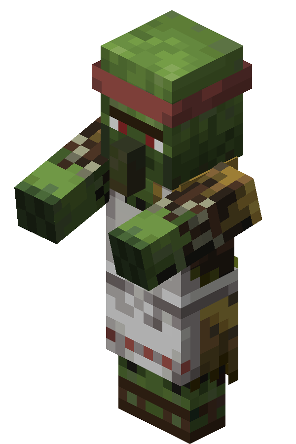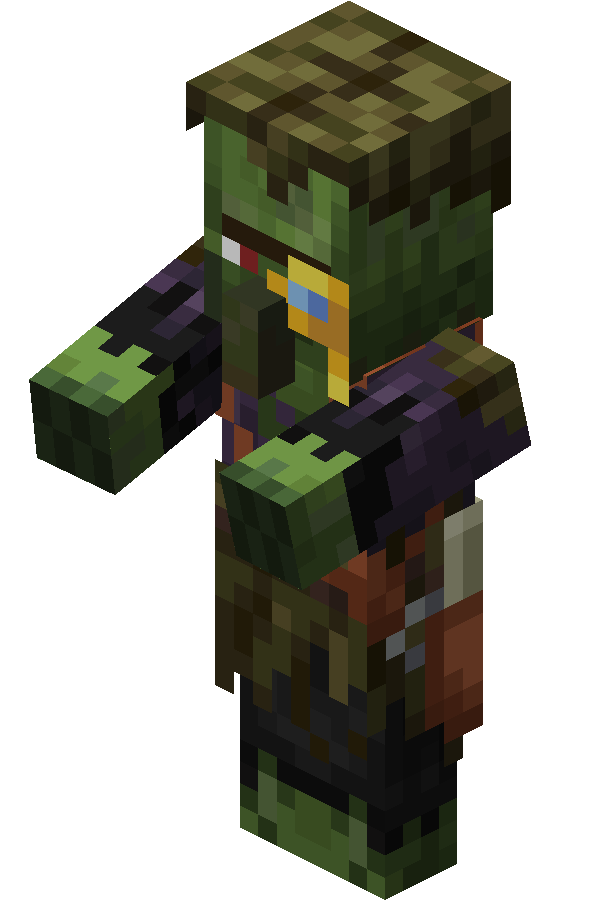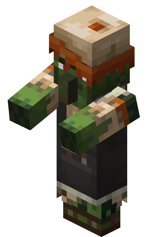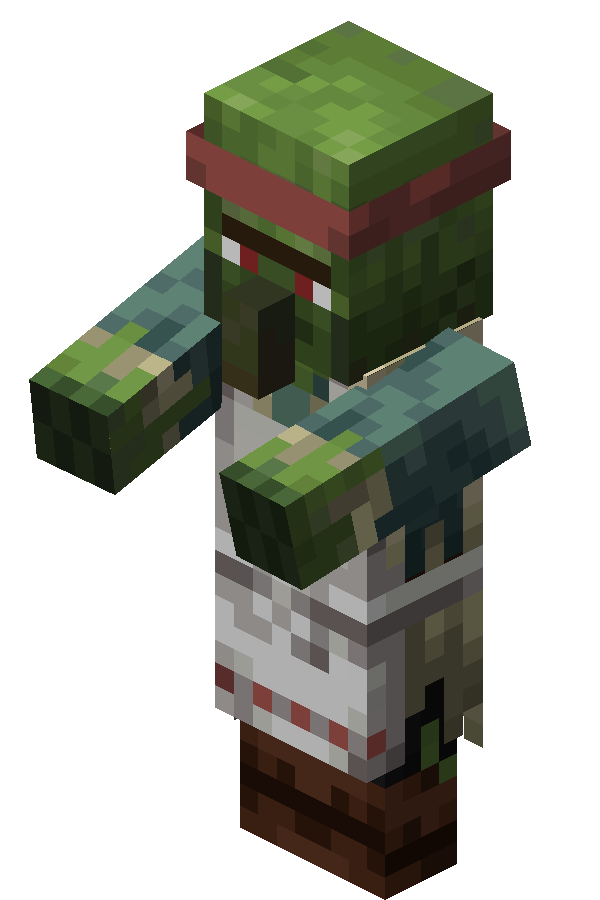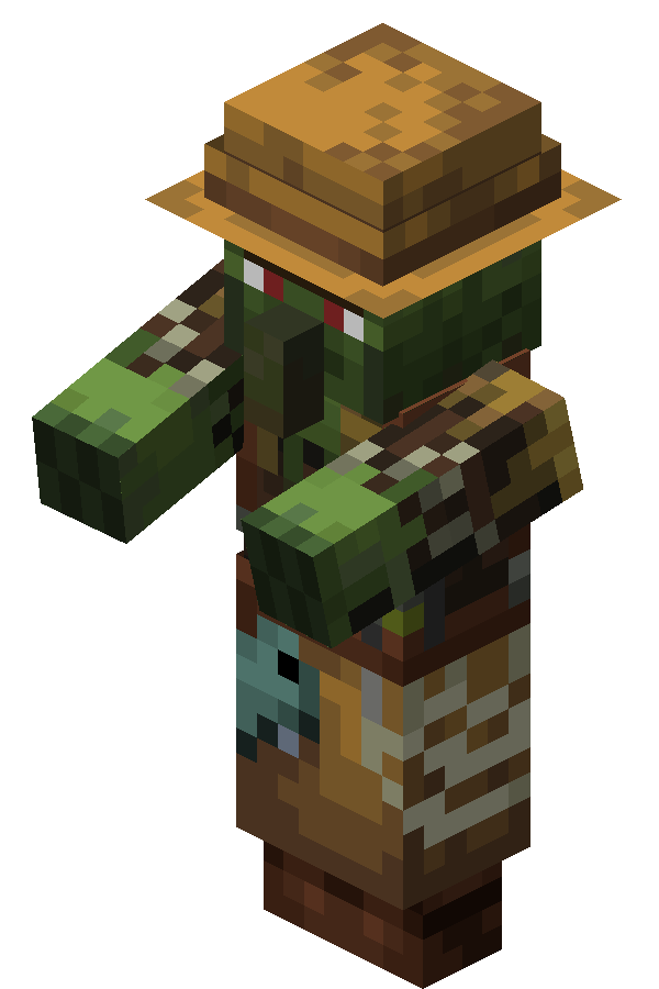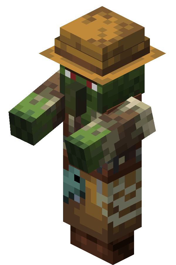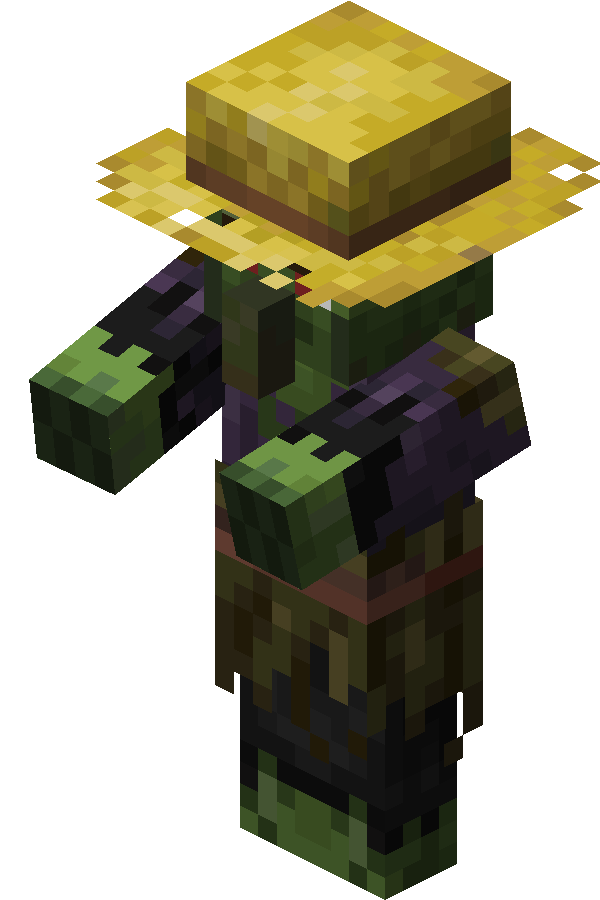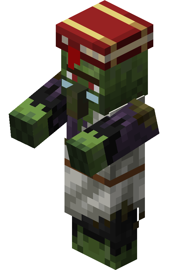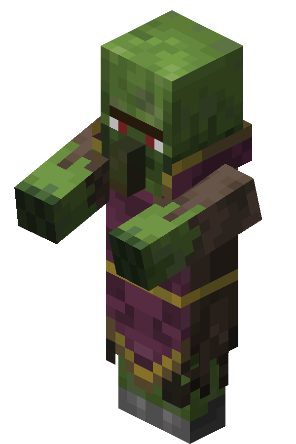 | Les zombies-villageois conservent leurs professions et leurs vêtements, qui ont une apparence en lambeaux. | |||||