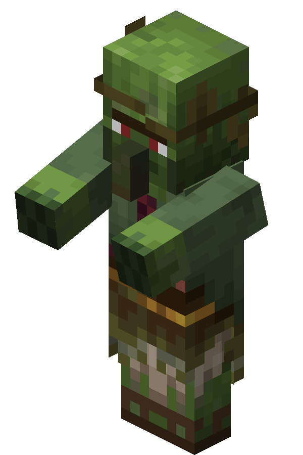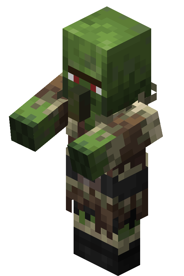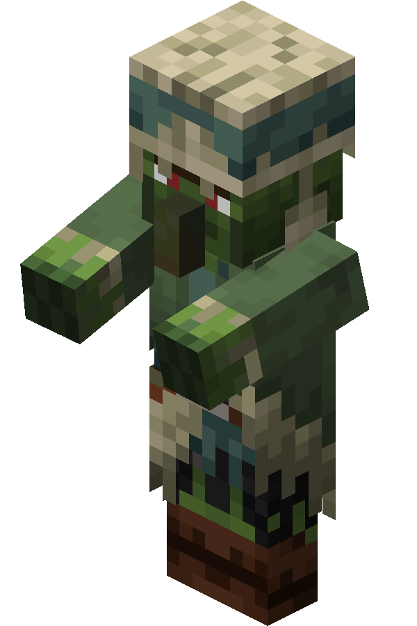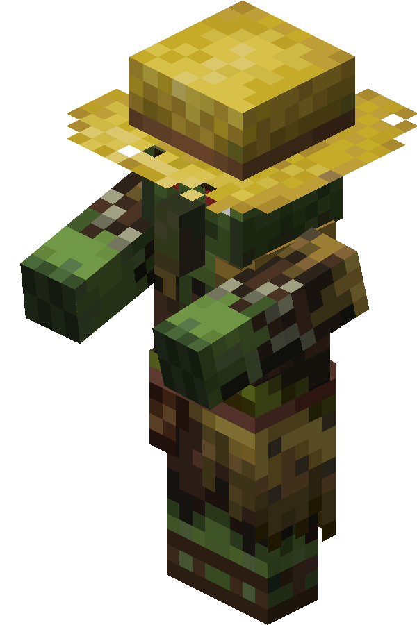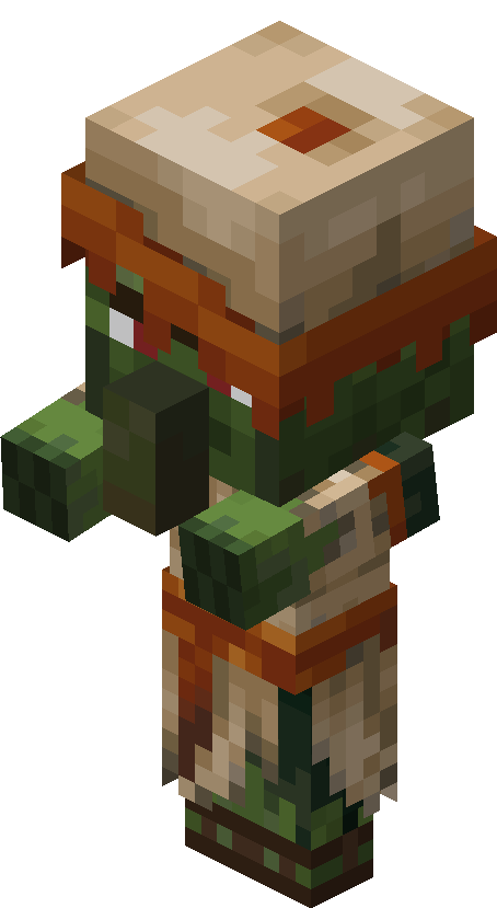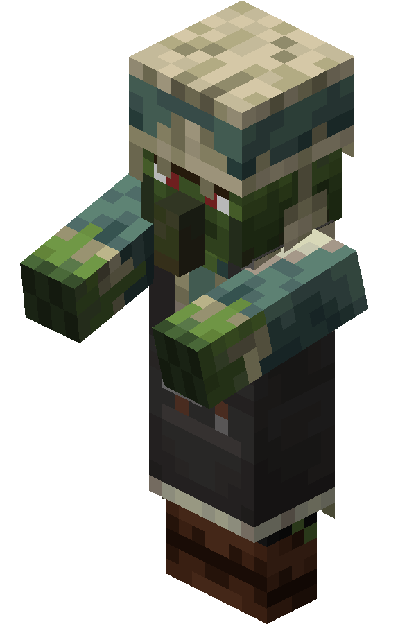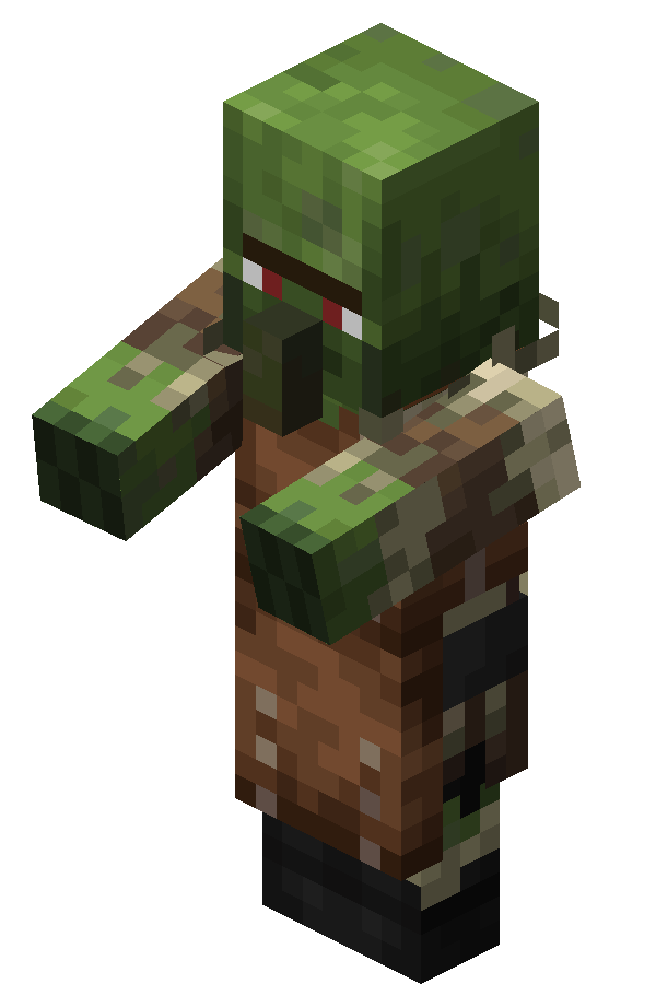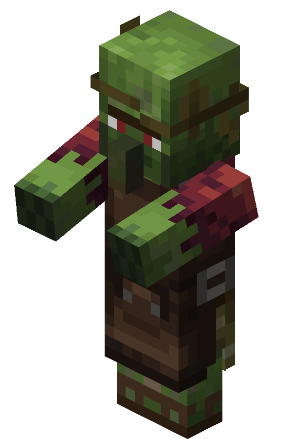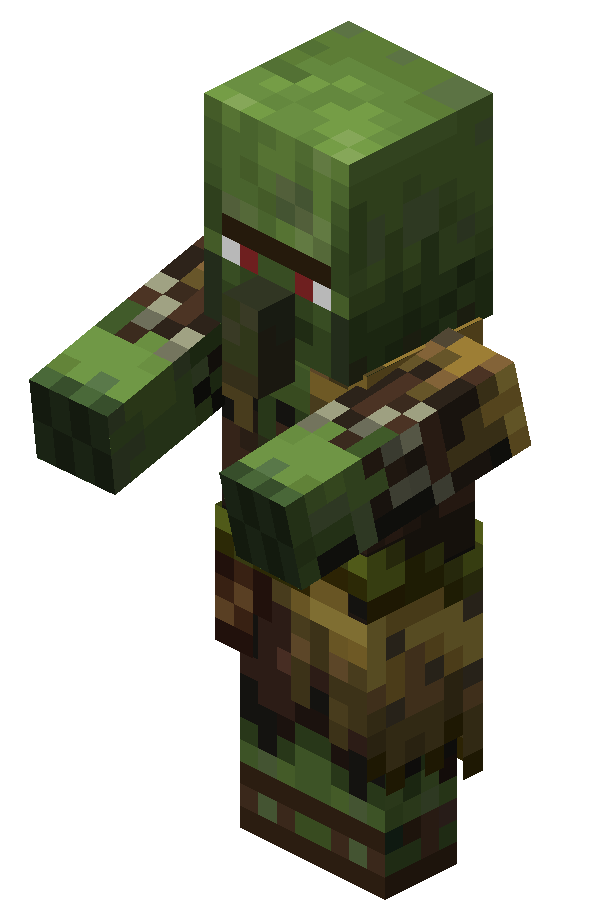 | Les zombies-villageois conservent leurs professions et leurs vêtements, qui ont une apparence en lambeaux. | |||||