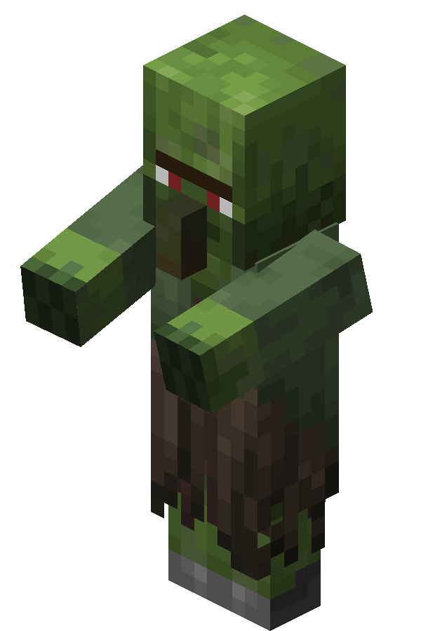 Contrairement aux zombies, les zombies-villageois ne se noient pas et restent inchangés sous l'eau.