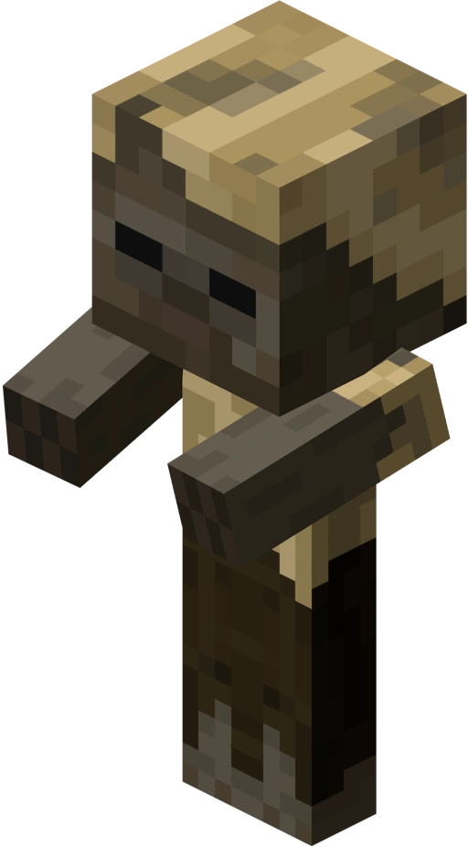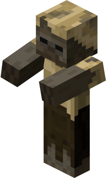 - Les zombies momifiés, reconnaissables par leur habit beige et leur peau noire, apparaissent dans les biomes chauds. Ils sont insensibles à la lumière du soleil et donnent l'effet