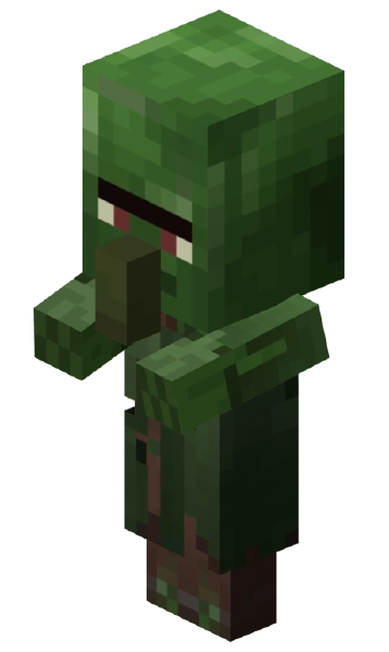 - Les zombies-villageois ont la même apparence que les villageois, mais leur peau est verte et leur habit est déchiré.