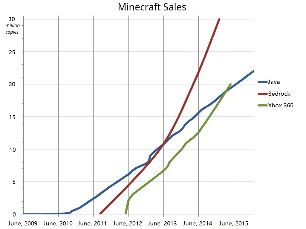 Minecraft eladási adatok, 2015 decemberéig.