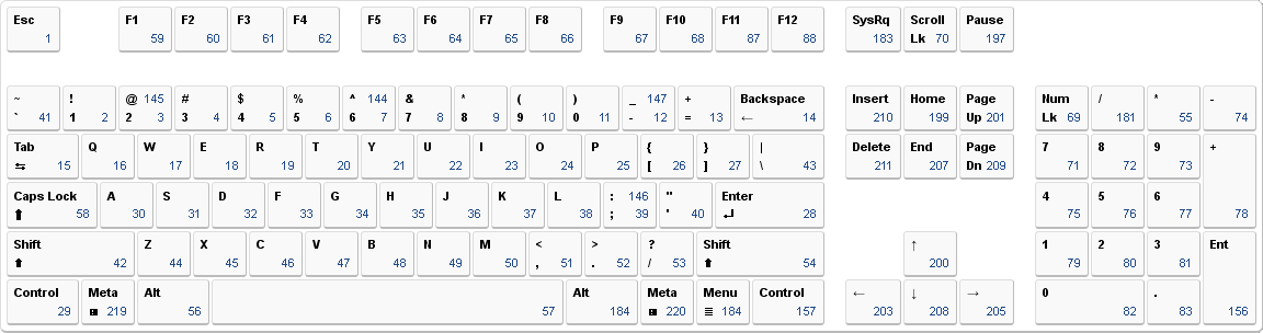 ↑ 3,03,1Az "LWIN" és "RWIN" nevek valójában az "LMETA" és "RMETA" neveket takarják.