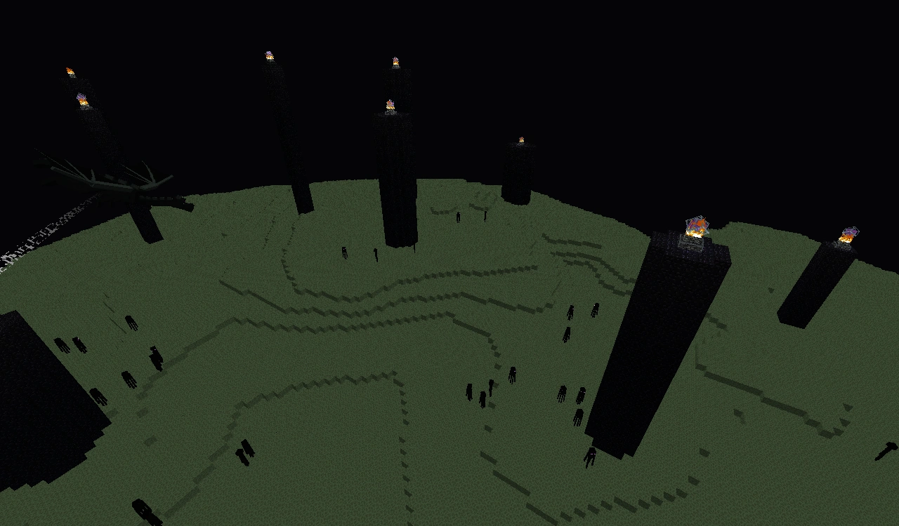 Hasonlóan az alvilághoz ide is csak portál segítségével juthatunk el. A világ egy nagyobb lebegő sziget, ami a csak itt megtalálható végzetkőből épül fel. Nincs alapkőzet, ami azt jelenti, hogy a semmibe esünk le a szigetről. A tájon elszórtan obszidiántornyok vannak, melyek tetején található a végzetkristály. 3 élőlény lakja be ezt a biomot. Az egyik a bevégző, amely ritkán de a valós világban is előfordul, a másik pedig a sötét (vagy végzet) sárkány. Ebből csak egy van a világban. Megölésével jelenik meg a sárkánytojás és körülötte egy portál amivel visszajuthatunk a valós világba. Itt lakik a vég városokban még a shulker is | Végzetkő, obszidián, végzetkristály, bevégző, végzetsárkány, sárkánytojás és obszidián oszlopok | 9 |