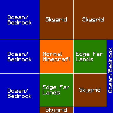 A Windows 10 kiadásban a hagyományos Far Lands nem generál, hanem a terep levág, és felfedi az alapkőzetet és az óceánt, míg a Netherben és az Endben Skygrid-ot hagy.
