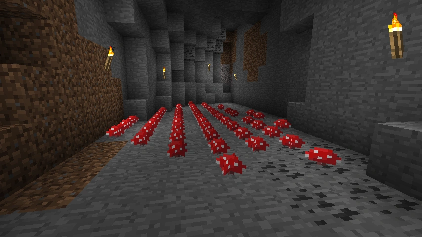 A túlélő-alapú játékmódokban a piros gombák sokkal ritkábban fordulnak elő, mint a barnák, viszont az Alvilágban ez pont fordítva van a fényviszonyok miatt.
