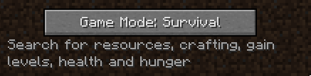Ebben a módban a játékos összegyűjtheti az összes alapanyagot, amiből építkezhet, barkácsolhat, vagy gyűjthet tapasztalati pontokat. Van életerő-, éhség- és páncél sáv, eszköztár és ha a játékos víz alatt van, akkor tüdőkapacitás. A spawn ponton kezdesz, ha meghalsz.