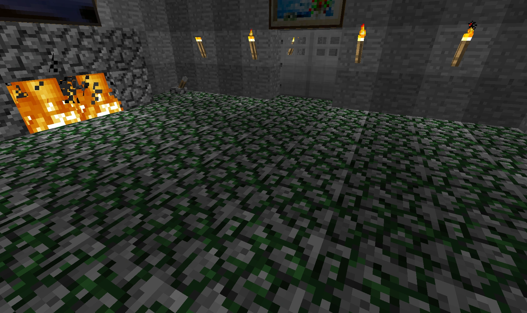 Ennek a szobának a padlója a kazamatákból származó mohás kőből van, díszítésként
