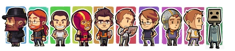 A Mojang alkalmazottjai, a Mojang öltönyeikben.
