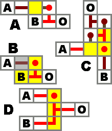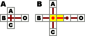 Az A elrendezés egy egyszerűbb verzió; kb. egy huzal, ami minden bemenetet és kimenetet összeköt. Azonban ebben a bemenetek nincsenek elszigetelve, tehát ha az egyik bemeneten áram folyik, az áram visszafolyhat a többi bemeneten, azokat aktiválva. Ha máshol is használnod kell a többi bemenetet, használd a B elrendezést.