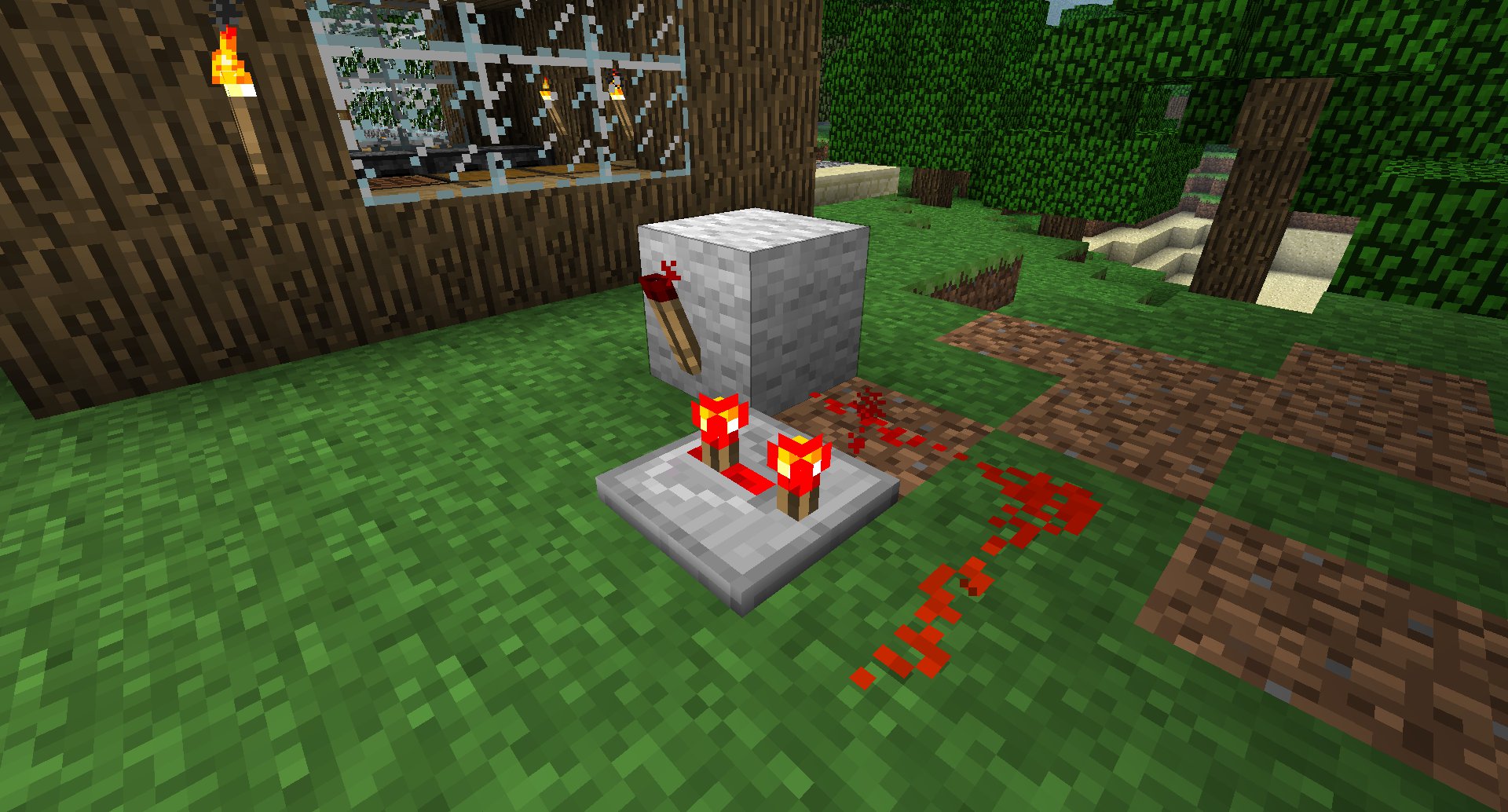 - egy blokknak, amihez egy kapcsoló van erősítve (egy blokk egy nyomásérzékelő alatt, vagy egy blokkra erősített kapcsoló vagy gomb vagy vöröskő fáklya),