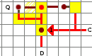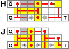 Egy rövid, alacsony áramú impulzus, magas áram helyett elkészíthető a B elrendezésben az utolsó inverter eltávolításával és helyettesítve egy drótösszeköttetéssel. Ez az a típus, amit a T és JK flip-flopok A és B elrendezésében látható (amikor J=1 és K=1).
