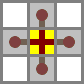 Mindegyik jel egy vagy két blokkot ábrázol (egy pedig három blokkot), felülről nézve.