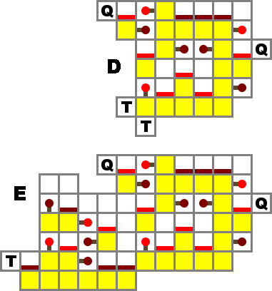 Egy kompakt, egyszerű 2-X-1-es egységet is lehet építeni, ha be vagy szorítva hosszú, keskeny folyosókba. Azonban, ez csak pulzáló bemenetekkel működik és nem működik állandó bemenettel. Az előbbi elrendezésekkel ellentétben, az 1-tikkes impulzusokkal is elbánik. Az A elrendezés 1-gyel hosszabbítja meg a bejövő impulzust. A B ezt kibővítve már hárommal hosszabbítja meg az impulzust. A C elrendezés hattal hosszabbítja meg a bejövő impulzusokat, és jól látszik rajta, hogyan lehet kompaktabbá tenni az elrendezést a jelismétlők késleltetését növelve, de ez csak akkor működik, ha a bejövő impulzus legalább 2 tikk hosszú. A D elrendezés 7-tel hosszabbítja meg az impulzust és akármilyen hosszúságú impulzussal működik. Megjegyzendő, hogy a tikkek száma, amivel ez az egység meghosszabbítja az impulzust, egyenlő a késleltetések számának összegével a jelismétlőknél, az első jelismétlő kivételével.