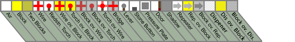 - Vöröskőfáklya: levegő vöröskőfáklya felett (minden fáklya vöröskőfáklya az áramkörökben)