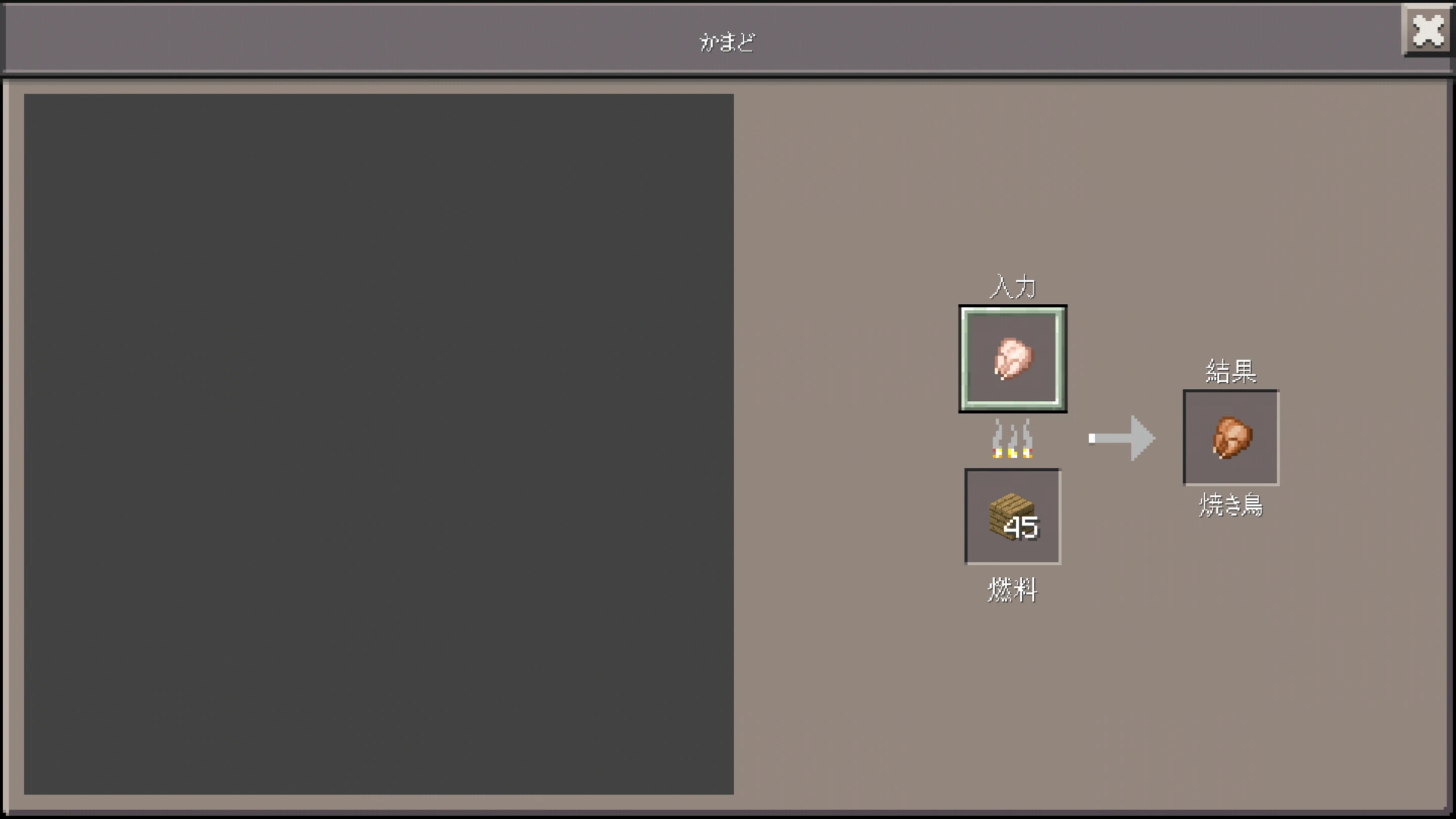かまどを右クリックすることで、かまど固有の製錬を行う事の出来る製錬メニューが表示され、このメニューには製錬されるアイテム、燃料、製錬されたアイテムのための3つのマスが存在する。