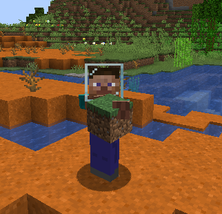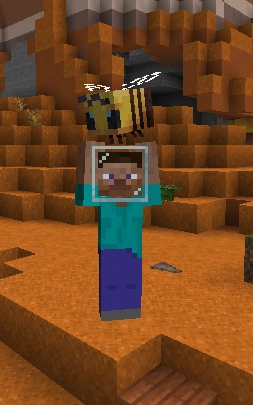 アイテムの中には、頭部スロットに設置すると特殊な表示のされ方をするものがある(/item replaceを用いて配置)。エンドロッドと望遠鏡は角、避雷針はシュノーケル、魚はマイク付きヘッドホン、フェンスゲートは眼鏡、リードはモノクルのように装着される。羽根や旗は略奪隊の大将のように後頭部に、骨は犬のように咥えているように見えるように表示される。