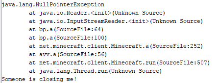 クラッシュ後、ランチャーのログの最後から2行目に「Someone is closing me!(誰かが近づいてきてる!)」と表示される。
