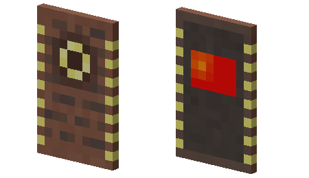 模様入りのブロックには、MinecraftのMobが模様として刻まれていることがある。砂岩にはクリーパー、赤い砂岩にはウィザー、ネザーレンガにはウィザースケルトン、磨かれたブラックストーンにはピグリンの鼻がそれぞれ描かれている。