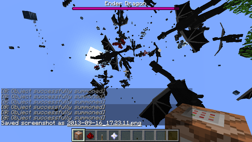- エンダードラゴンが最後のボスであるが、ウィザーの方が開けたところで倒す場合はずっと難しい。トラップに嵌めれば、簡単に倒せる。