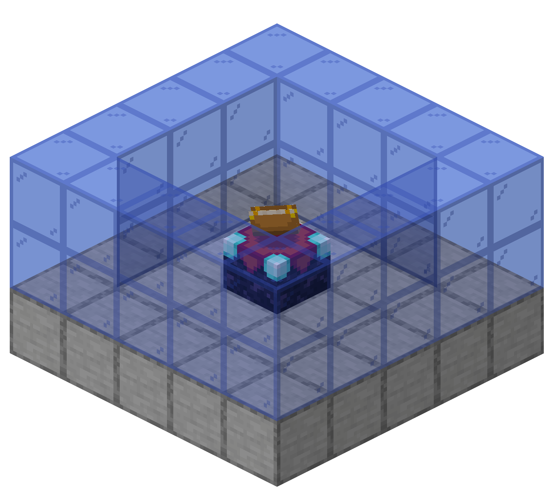 エンチャントテーブルの周りにこの形で本棚を15個置けば最高レベルのエンチャントが得られる。