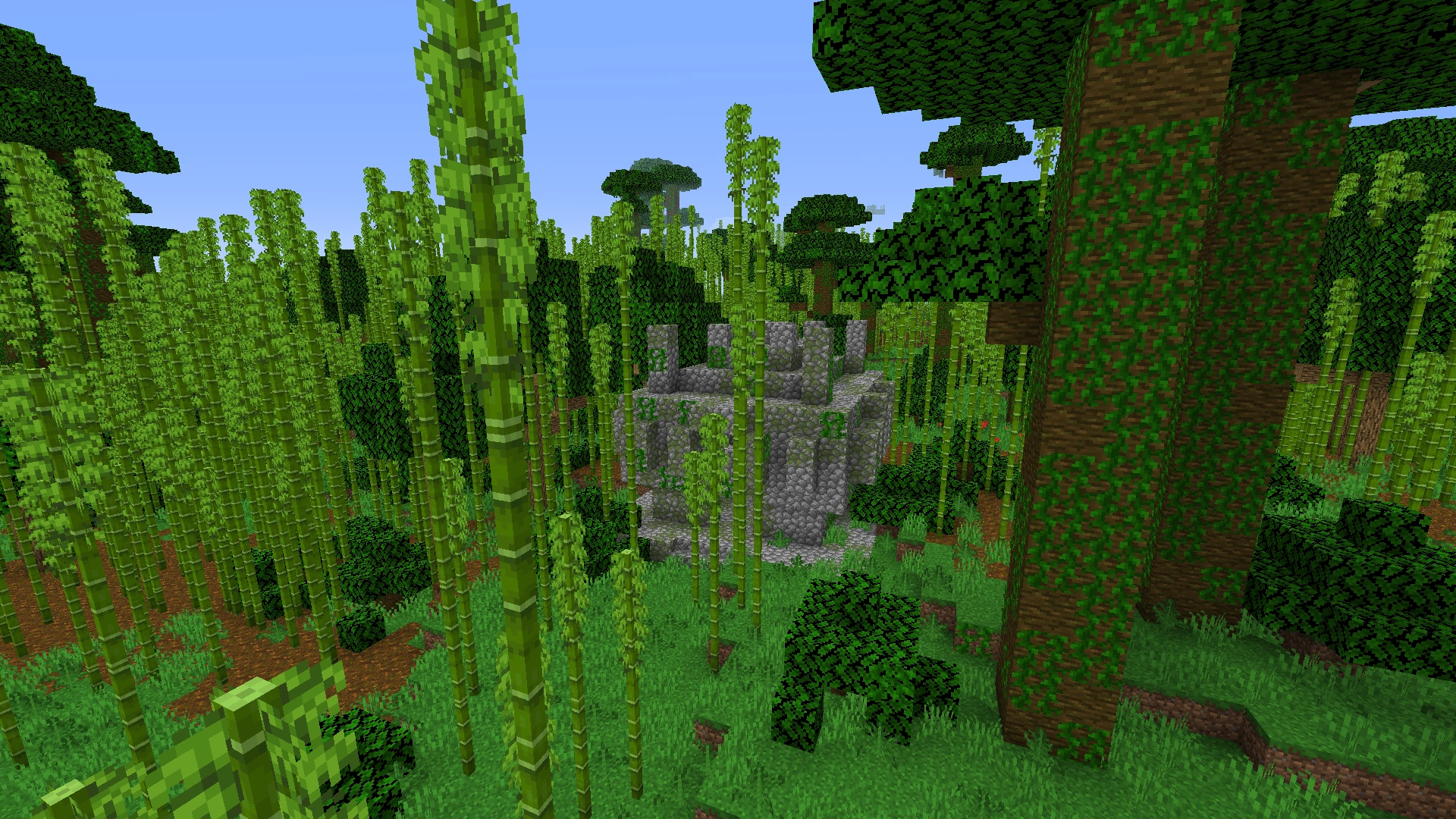 竹林の丘内のジャングルの寺院。これはBedrock EditionおよびMinecraft Educationでは起こらない。