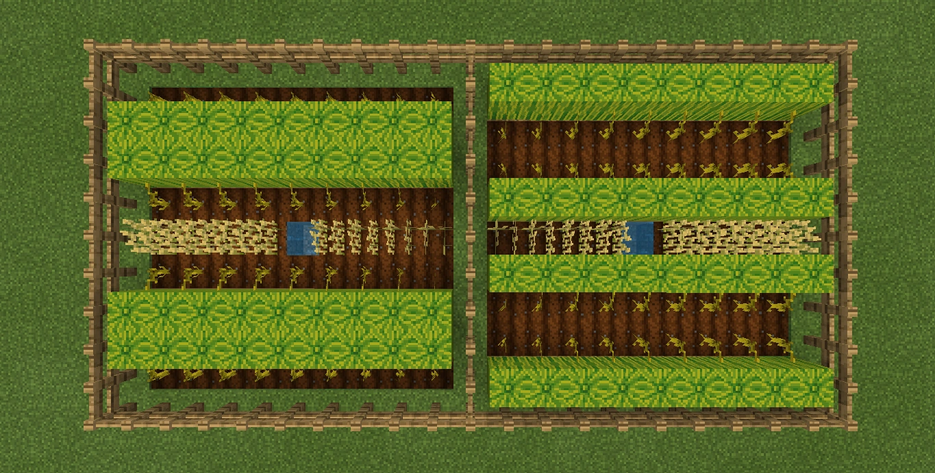 - Bedrock Editionではたとえスイカがその茎から生えていなくても、スイカを茎の隣に設置するとあたかもその茎から生えているかのように見える[3]。このため、2つのスイカを茎の両側に設置した場合、茎は両方へ枝分かれする。カボチャでも同じことが起こるが、異なる種類の植物へは枝分かれをしない。