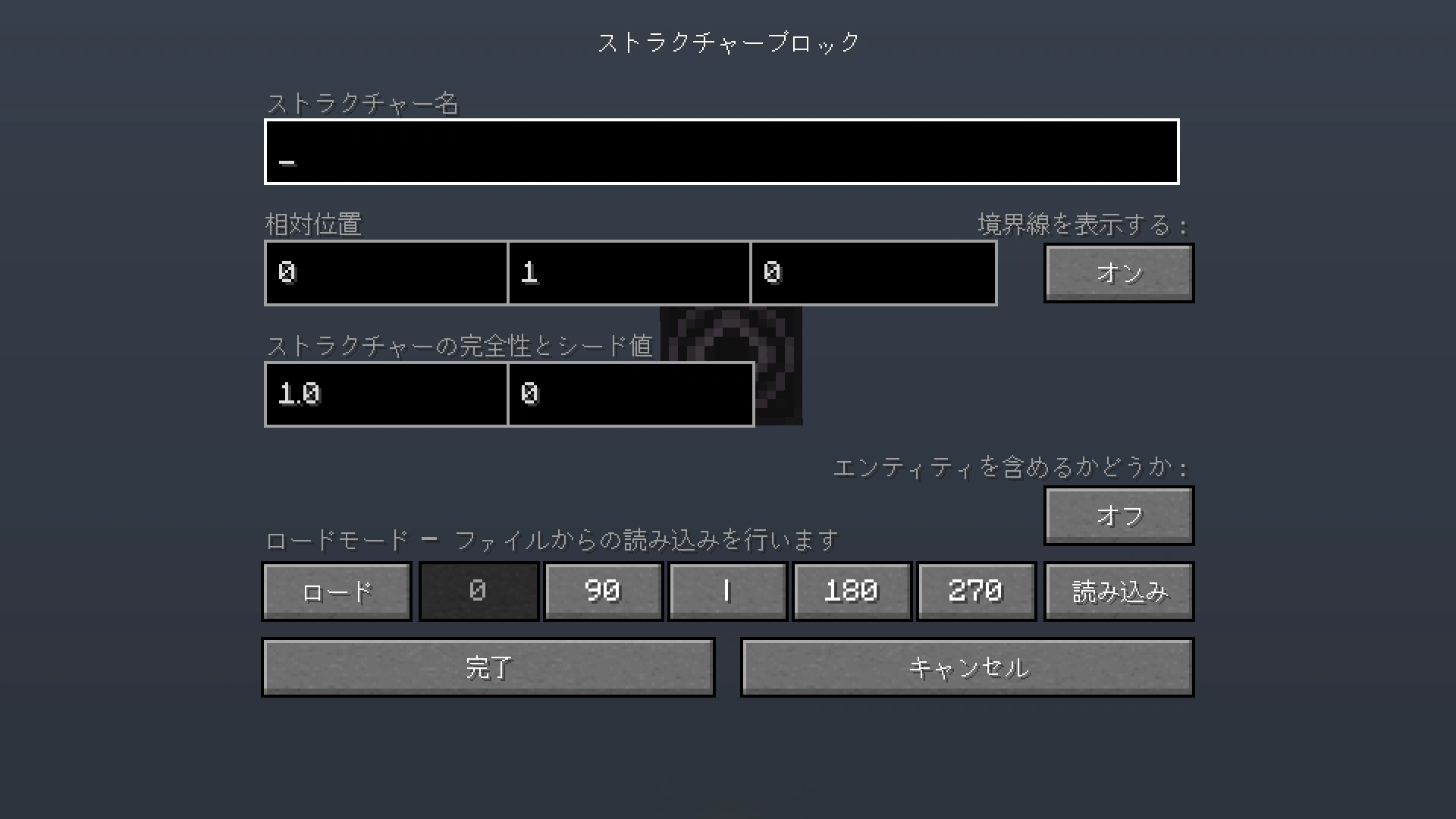 | ロードモード時に"ストラクチャーの完全性とシード値"を追加した。 | |||||