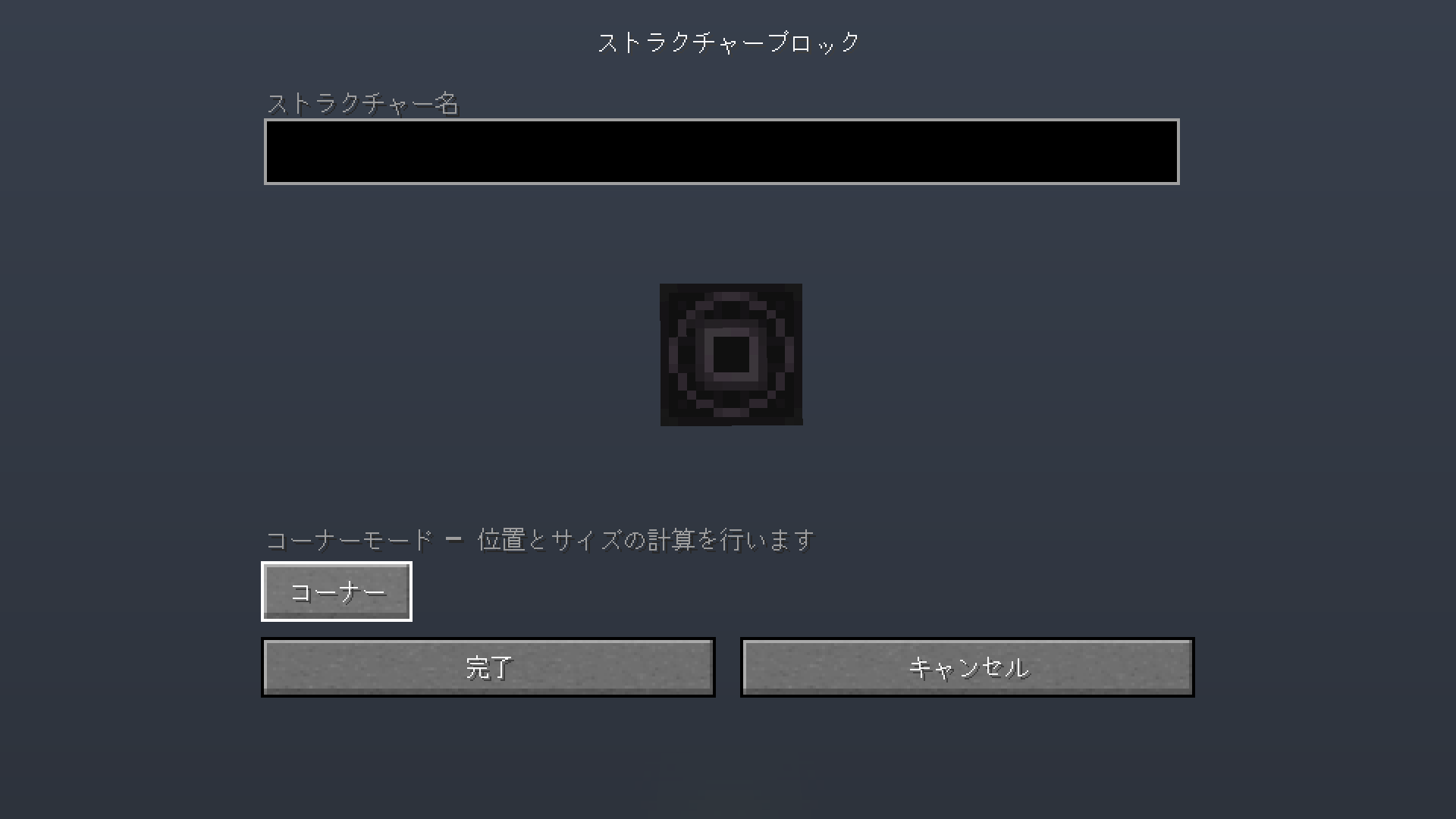 - ストラクチャーブロックの位置を基準として、構造体を生成するためのコーナーのX座標、Y座標、Z座標。