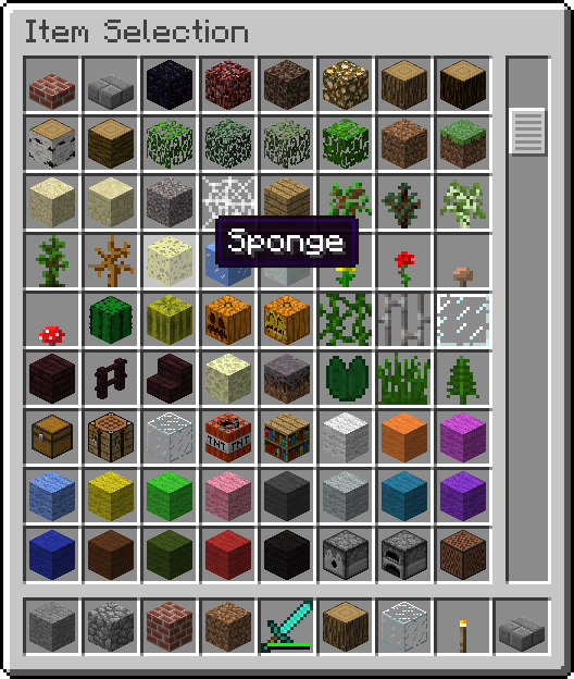 Adventure Update(Beta 1.8) 以降、スポンジはクリエイティブモードで入手可能になった