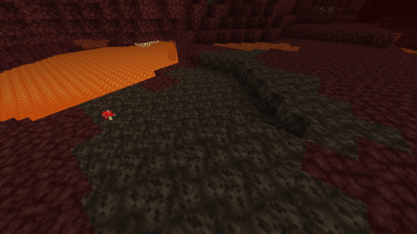 - Y=60以上の同じ列に生成された場合、Y=60以下の洞窟と溶岩プールの地表上にソウルサンドが生成される。