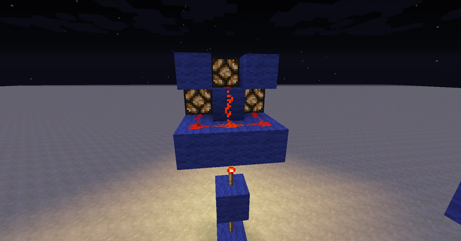 下のトーチがその上のブロックに電力を供給し、ブロックとそれに取り付けられているすべてのレッドストーントーチに電力を供給します。各層(上にトーチがあるブロック)はリピーターのように機能します。また、電力を生成しながら空の建築限界高度まで上昇することもできます。これをすぐに処分したい場合、または試験で行いたい場合は、ブロックに砂利や砂を使用して下さい。