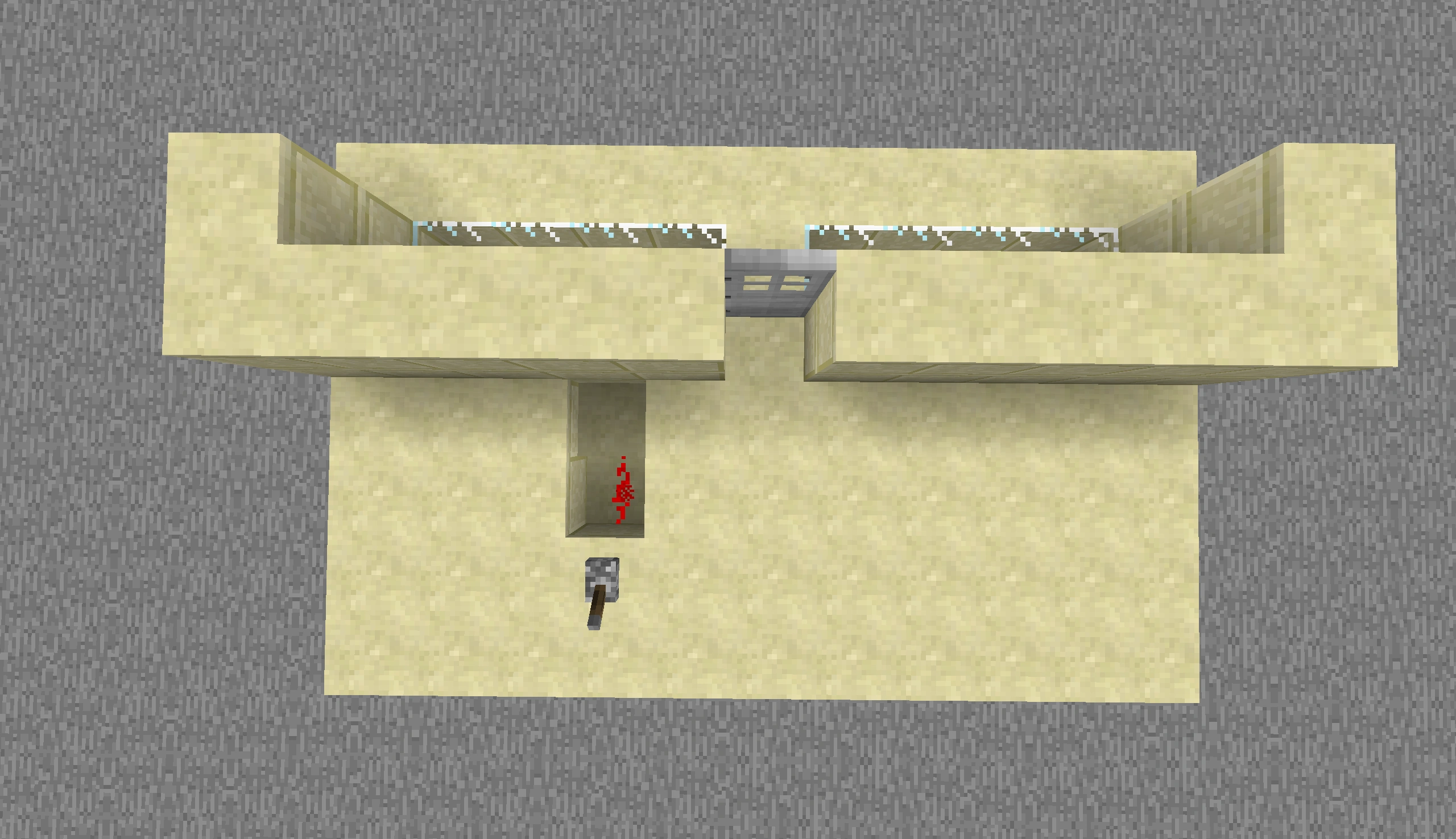 レバーを使って特定の組み合わせを入力して開くドア。レバーは「AND」ゲートに配線されており、鉄のドアを開くレッドストーン回路が隠されています。