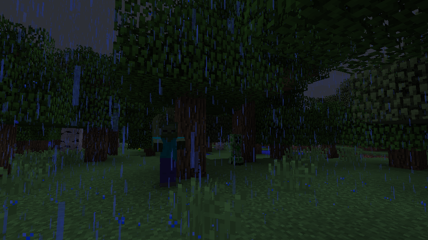 これは雷雨時のオーバーワールドの様子です。実際には昼間にもかかわらず、モンスターが出現することができます。