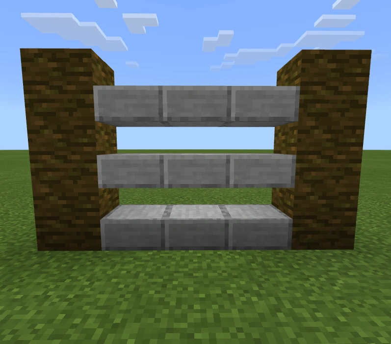 | 石レンガのハーフブロックまたは 苔むした石レンガのハーフブロック |