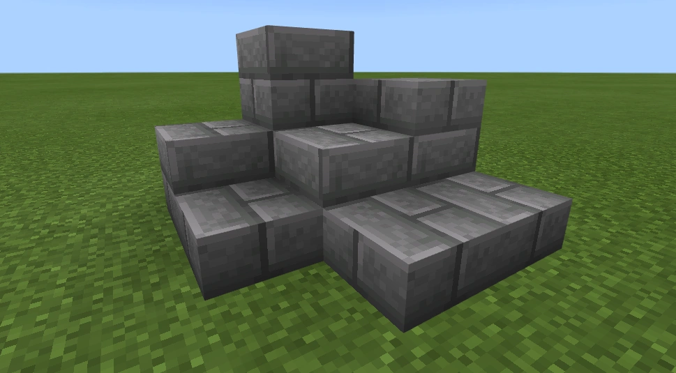 | 深層岩の丸石のハーフブロックまたは 磨かれた深層岩のハーフブロックまたは 深層岩レンガのハーフブロックまたは 深層岩タイルのハーフブロック |